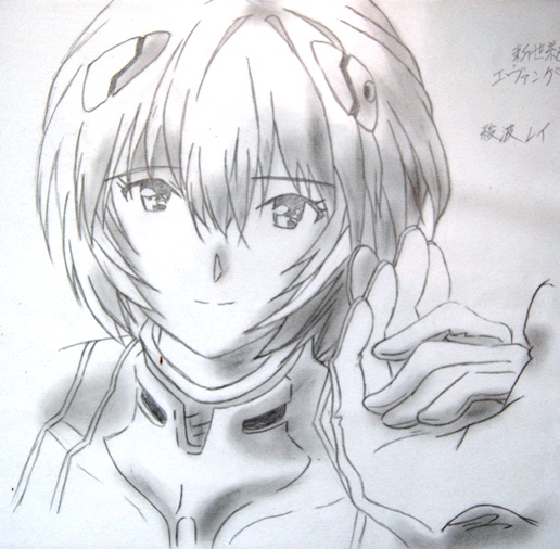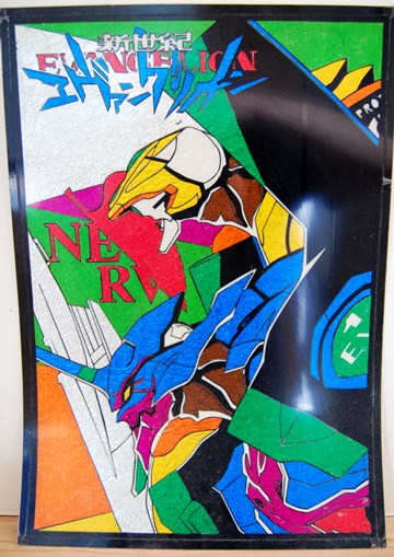 ※私のお気に入りの一品。「綾波レイ」は娘の鉛筆画 「エヴァンゲリヲン」は息子の色セロハン作品です♪