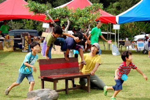 小雨が降る中始まった「うみがめ祭り」 最初は子供たちのゲーム。