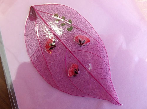 先生の準備して下さったしおり用葉脈標本はとっても素敵!