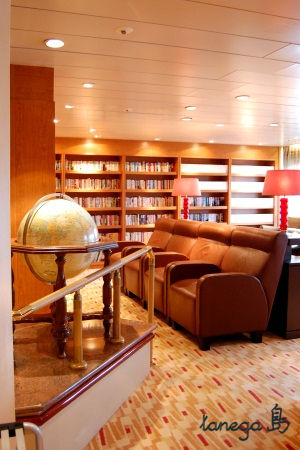 船内には図書館、