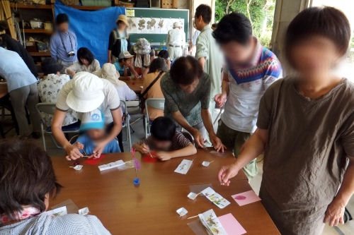 その後、参加者全員で押し花作り。しおりとハガキに先生が準備して下さった