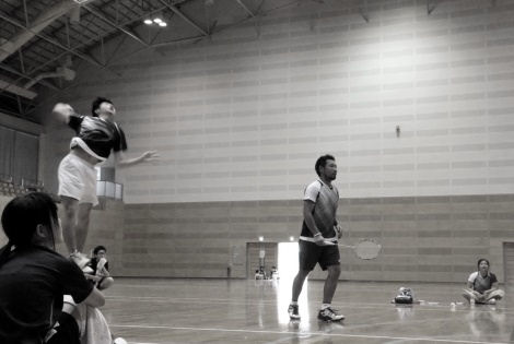 夏のバドミントンは過酷ですね。閉め切った体育館の中はサウナ状態。