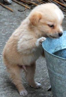 バケツの水を飲もうとしているようです。