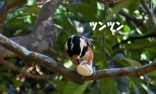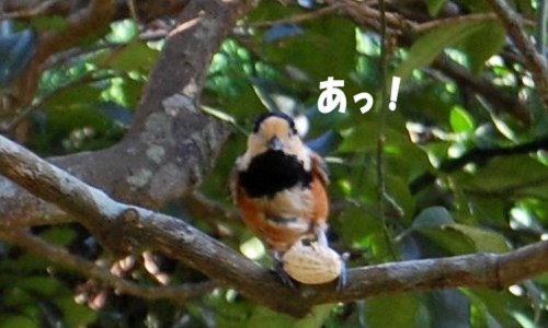 何の鳥かわからないけど、落花生を枝に打ち付けて割ろうとしていたらしい(^_^;)