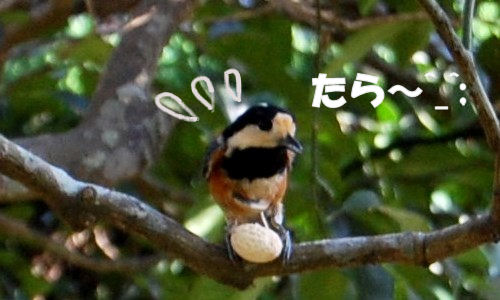 落花生泥棒 ヤマガラ君 再度襲来!! 今度はくちばしで殻を割っていました(^^ゞ