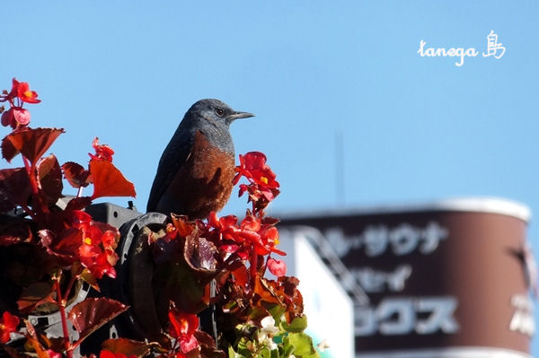 ヒヨドリの仲間の「イソヒヨドリのオス」だと思います。