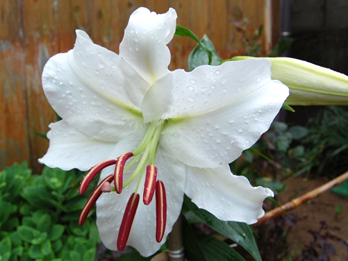 先日からの暴風雨にさらされ、庭の草花は傷んでしまった。