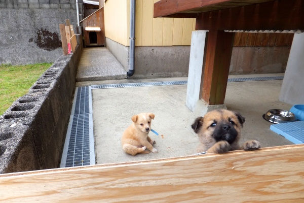 2匹でいても淋しいのか、しきりにクンクン鳴いています。日が暮れて寒くなってきました。