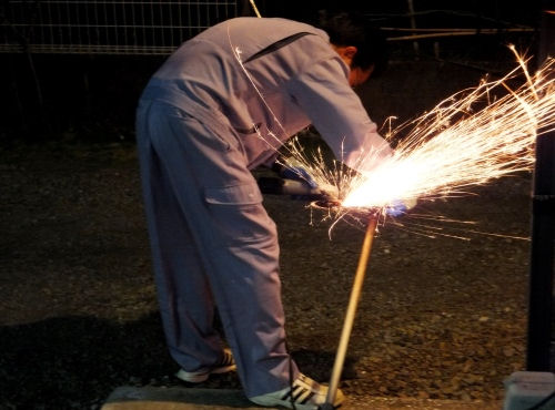 主人は寛平のために草払い機の刃を研いで次回の準備をしていた。