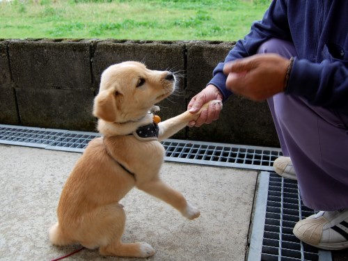 寛平ちゃん、お手を覚えたら一人前<(`^´)>