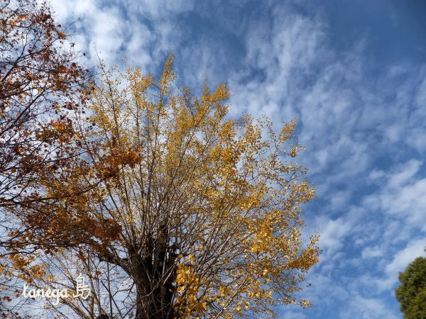 紅葉、イチョウ、そして雲、青空綺麗ですね。