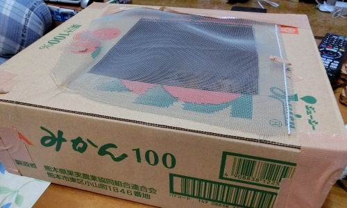 急きょ、みかんジュースの箱で簡易虫かごを作成。さすが!昔の少年!!