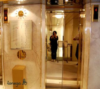 ホール 素敵な金ぴかのエレベーター。思わずパチリッ!