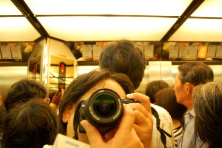 エレベーター内は鏡張り。小さなエレベーターも広々見えます。ここでもパチリッ!