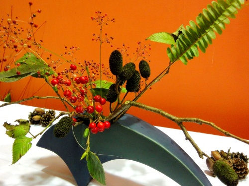 「石堂社中」 右上の生け花はご近所の小学生の作品です。とってもステキ!秋を感じます。