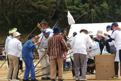 輪入れゲーム(60歳以上男女5名) 玉入れ競争(小学生10名60歳以上4名)