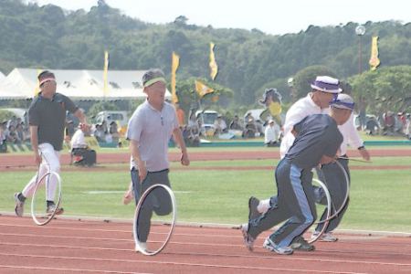 男子輪回しリレー(40歳代5名50歳代5名) 女子輪回しリレー(婦人5名)