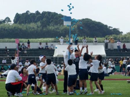 玉入れも100個 全部入れたのが3チーム 玉入れは得点が2倍なので野間下は完全負けムード