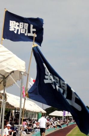 紺色のユニホームはどこの地域かな? 青白の鉢巻だから「野間下」かな?