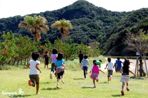 小雨が降る中始まった「うみがめ祭り」 最初は子供たちのゲーム。