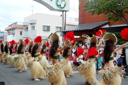 わぉっ!タヒチアンダンスチーム(フラダンスかな?)がパレードに参加 あれっ?知ってる人がいる!