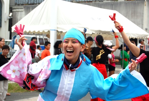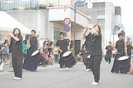 高校生の納官和太鼓(のうかんわだいこ)チームは迫力の演奏。