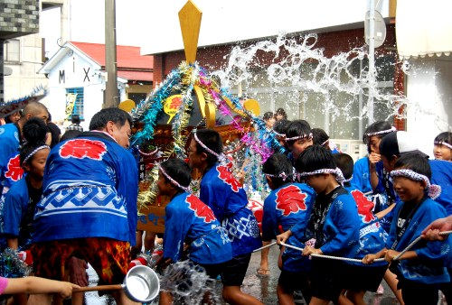 子供神輿が元気にねり歩く。以前より子供の数が減って、神輿も少なくなった。