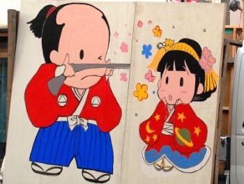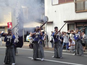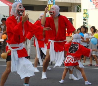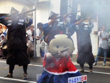 ひょっとこ踊り 種子島のキャラクター「火縄銃兵衛&わかさ姫」
