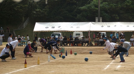 これを10名(男女各5名)でリレーする。 なかなかビンに当たらない時は冷や汗もののゲーム。