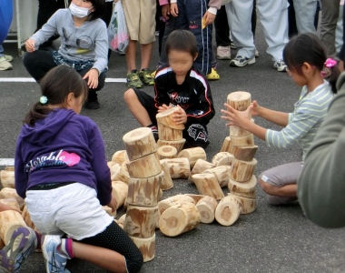 小学低学年は「木積み競走」です。 バランス感覚の良さにビックリ\(◎o◎)/!