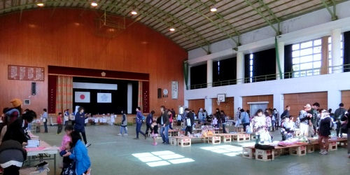 提供品、野菜、花の球根etc が体育館で販売されました。