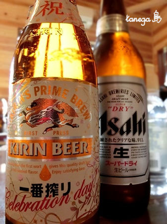 餅まきの後は新宅で祝宴。お祝いラベルのビールがあるんですね。お正月が近いからかな?