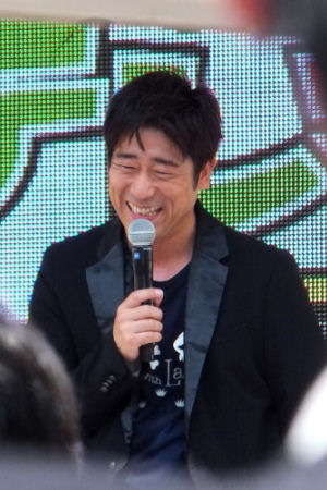 天文館では原口あきまささんと鹿児島出身の英明さんがものまねショー