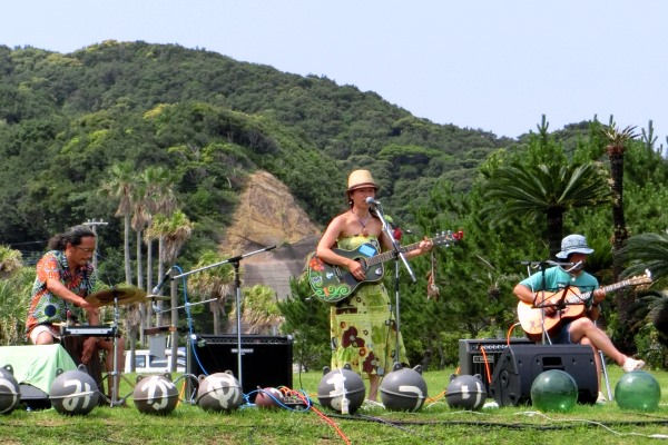熊野海水浴場にはたくさんの人が集まり、フラやバンド演奏のステージを楽しんでいました。