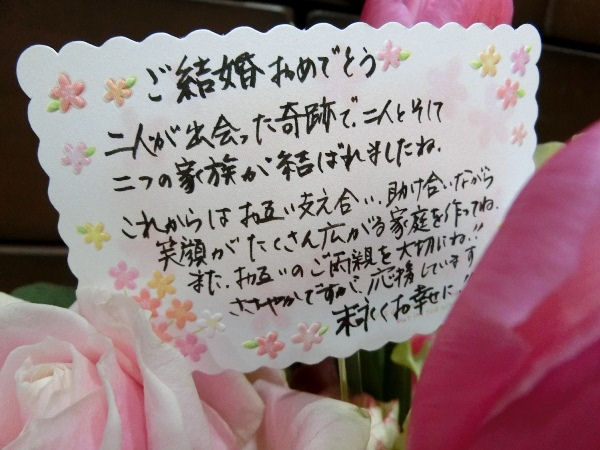 「二人が出会った奇跡で二人と二つの家族が結ばれました。」