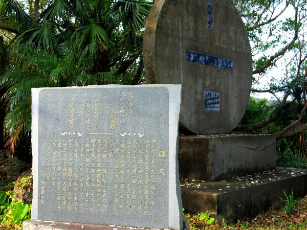 中種子町坂井公園近くの記念碑 大ソテツがある坂井神社の道向いにあります。