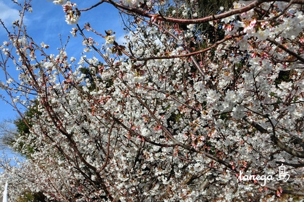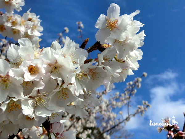 毎年2月末に山桜が満開となり、木々を飛び回るメジロの姿を見ることができる。