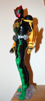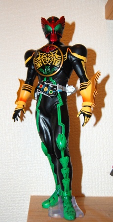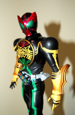 ニコニコご機嫌な主人(*^_^*) ¥300でゲットした「仮面ライダーオーズ」のフィギア。