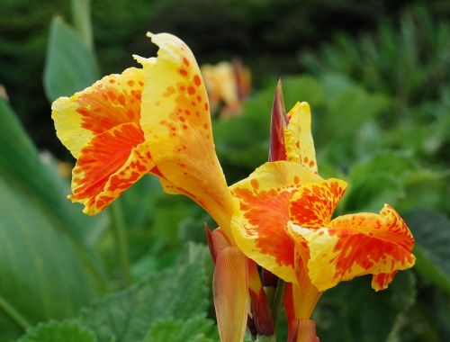 黄色と赤のユリ