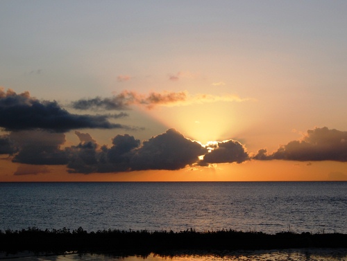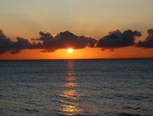屋久島を背に夕日が沈む。