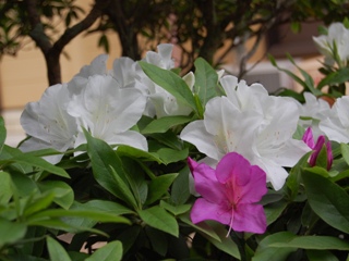 「ツツジの花」が咲きだした。最近白いツツジにピンクの花が咲く。白い花弁にピンクのラインも入ってきた。不思議!私も25年経って、このツツジのように種子島に馴染んでいる。