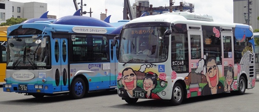 イルカのデザインの「かごしまシティービュー(鹿児島市)」1回乗車180円も同様の