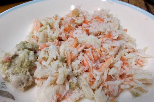 今日はほぐした身を使ってカニサラダ! 1時間かけて剥いた身を