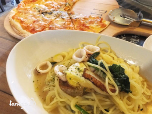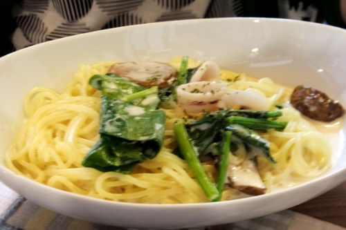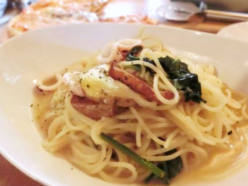 今日の日替りはイカとじゃが芋とほうれん草のパスタ。
