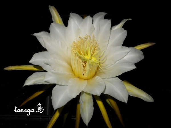 ドラゴンフルーツの花は月下美人のように夜から朝方にかけて咲きます。