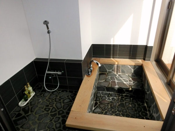 【お風呂】全室にあるかけ流し天然温泉。 泉質:アルカリ単純温泉