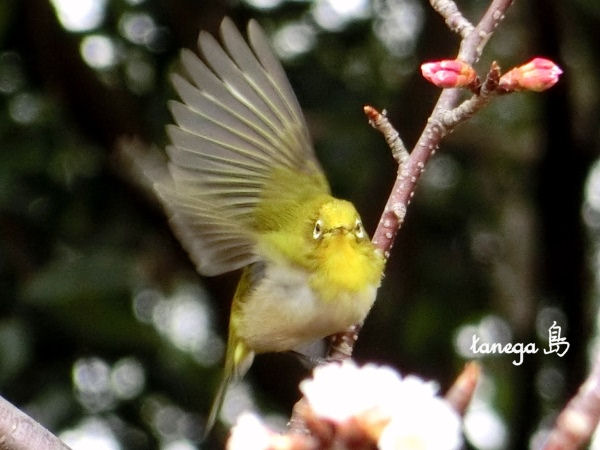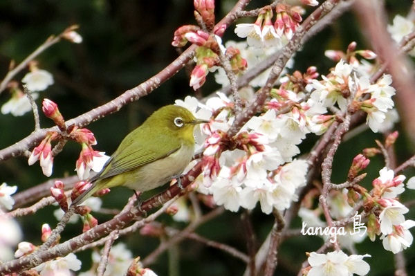 毎年2月末に山桜が満開となり、木々を飛び回るメジロの姿を見ることができる。