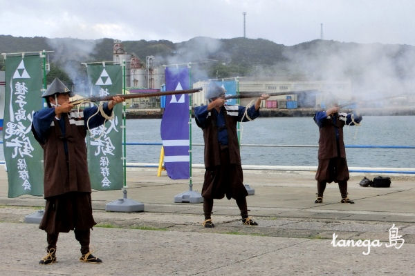 すると種子島火縄銃保存会が歓迎の試射 港に号砲が響き渡りました。
