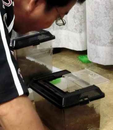 家に帰ると主人が昆虫ケースを覗いています。2つに増えた昆虫ケースに昨日も今日もどんどん