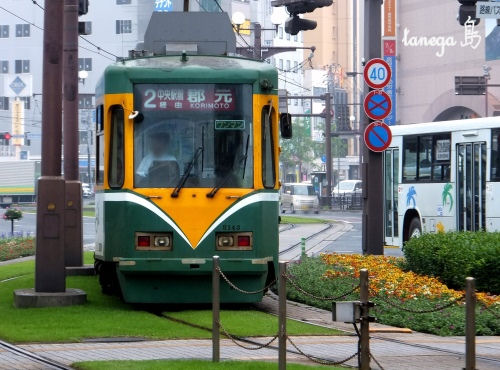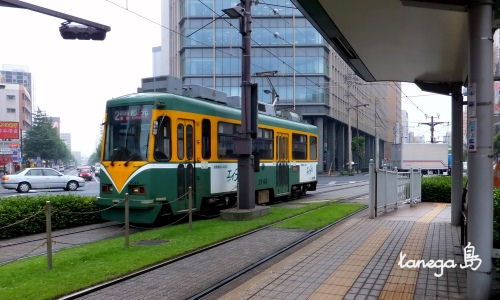 今日も鹿児島の市電。鹿児島中央駅前電停です。